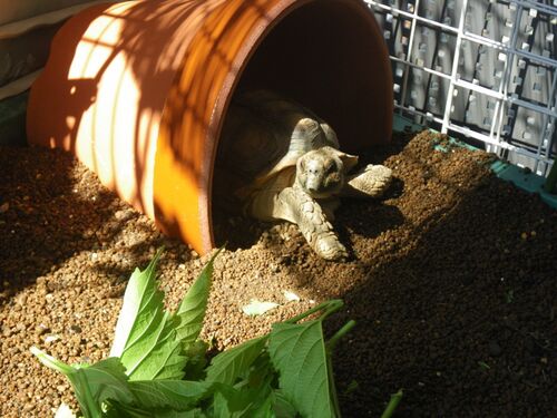 屋外飼育が始まったので飼育データをシビアに見なくなっています。温度管理と日光浴を気にしなくなるとやはり楽ですね。写真は早朝の様子。既に温度計は35℃を示してました。横から差し込む朝日はかなり温度を上げますね。簾が機能しません。