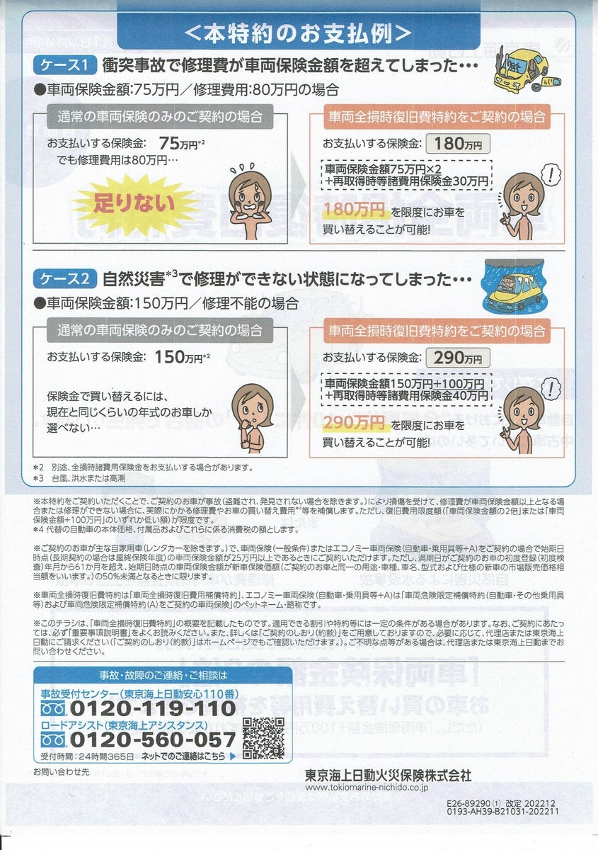 因みに特約つけたことによりアルファ全損事故時に受け取れる保険金は270万!ということになった。